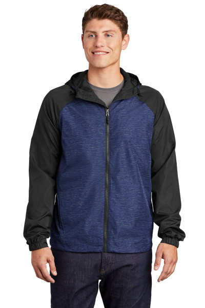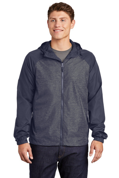 A heather print gives this water-resistant wind jacket a sporty, energized look.