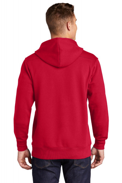 9-ounce, 65/35 ring spun combed cotton/poly fleece White lace drawcord with grey tick stitching Twill-taped neck 2x2 rib knit side gussets, cuffs and hem with spandex Front pouch pocketDetails