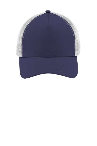 Fabric: 100% polyester interlock front panels with PosiCharge technology; 100% polyester mesh back panels
