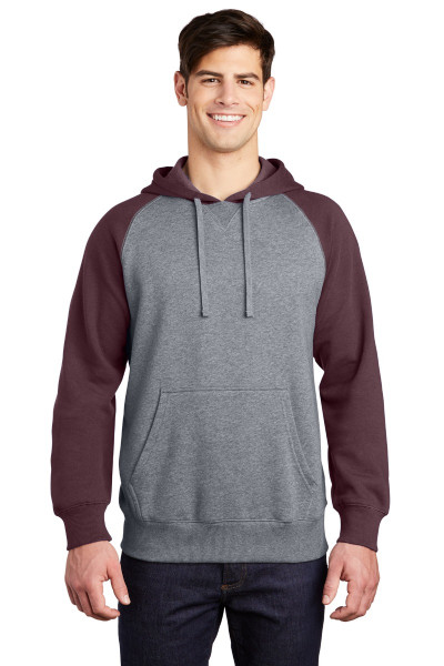 9-ounce, 65/35 ring spun combed cotton/poly fleece Three-panel hood Dyed-to-match drawcords Twill-taped neck Rib knit V patch at neck 2x2 rib knit cuffs and hem with spandex Raglan sleeves Front pouch pocketDetails