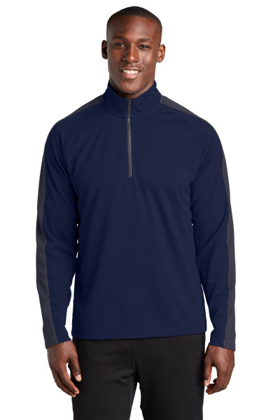 Contrast sleeve stripes and texture give this moisture-wicking pullover an unrivaled look.