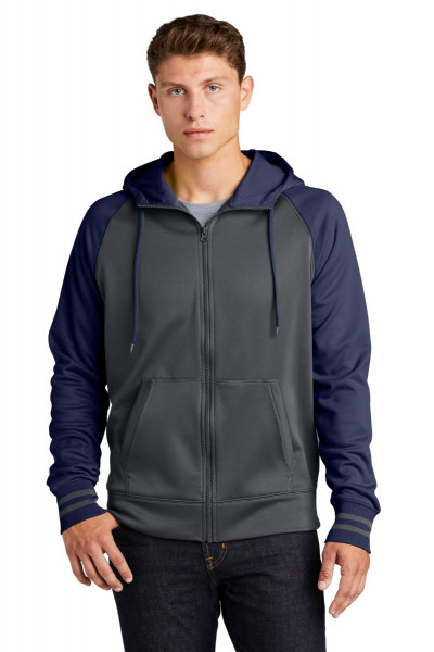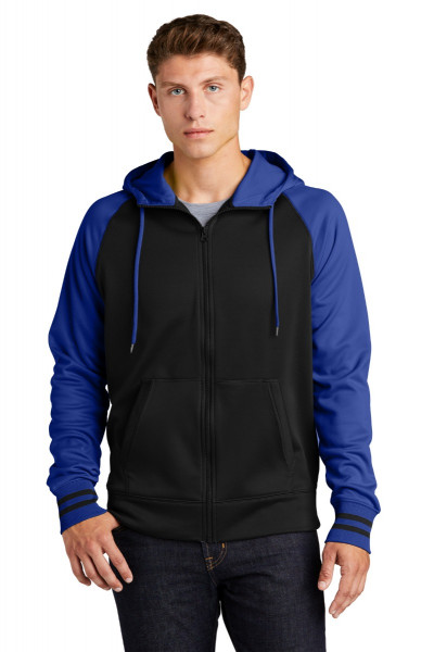 With colorblock raglan sleeves, this varsity-inspired jacket wicks moisture and fights static.