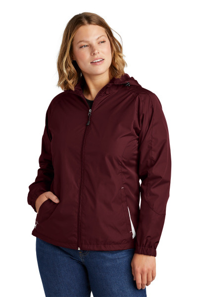 100% polyester shell 100% polyester jersey lining with mesh insets at gussets for added breathability Tag-free label Gently contoured silhouette Three-panel hood with drawcord and toggle Front zippered pockets Half elastic, half self-fabric cuffs for comfort Port Pocket™ at left chest for easy embroidery access Drawcord hem with toggleDetails