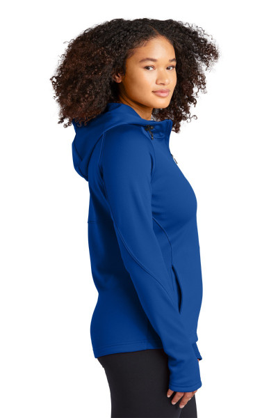 Snag-resistant and pill-resistant with a matte finish, this feminine double-knit jacket keeps moisture under control and allows maximum movement. The three-panel hood with drawcord and toggles offers year-round versatility.