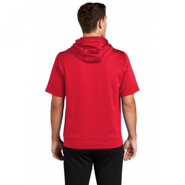 Made for layering, this moisture-wicking hoodie has trend-right short sleeves for more mobility.::100% polyester::Anti-static::Tag-free label::Three-panel hood::Dyed-to-match drawcords::Taped neck::Self-fabric hem::Front pouch pocket