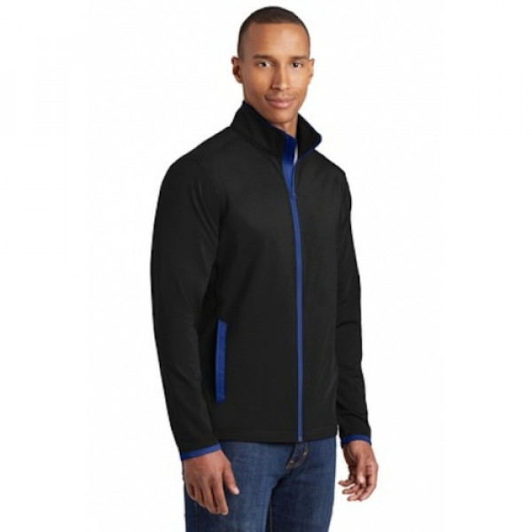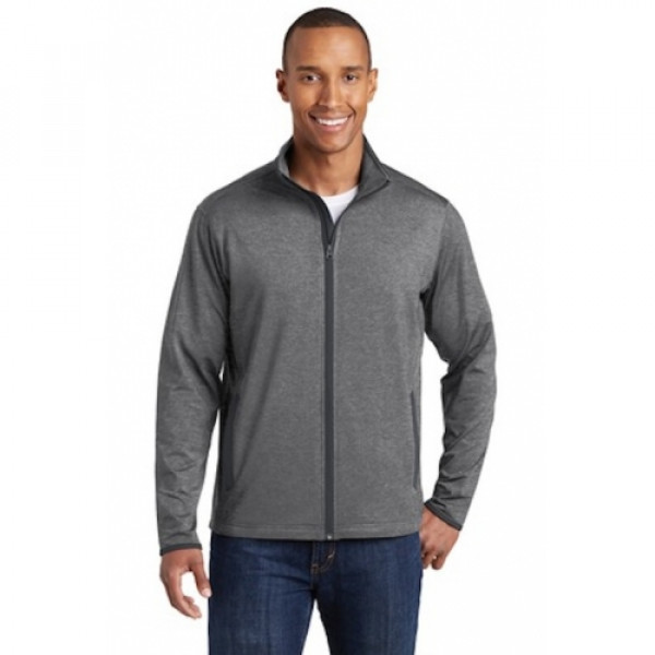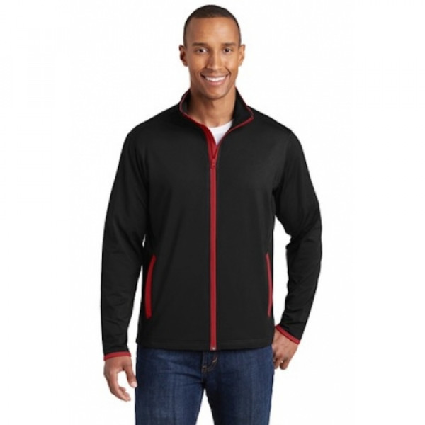 Keep moving in this moisture-wicking, soft-brushed jacket that's flexible and features hits of contrast color throughout.::6.8-ounce, 90/10 poly/spandex jersey::Cadet collar with contrast piping::Tag-free label::Taped neck::Contrast reverse coil zipper::Set-in sleeves::Contrast cuff binding::Contrast welt front pockets::Due to the nature of 100% polyester performance fabrics, special care must be taken throughout the printing process.