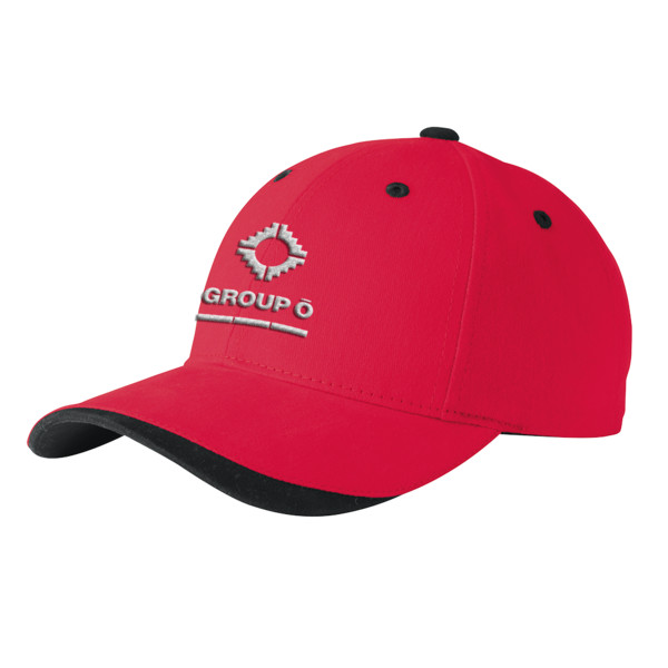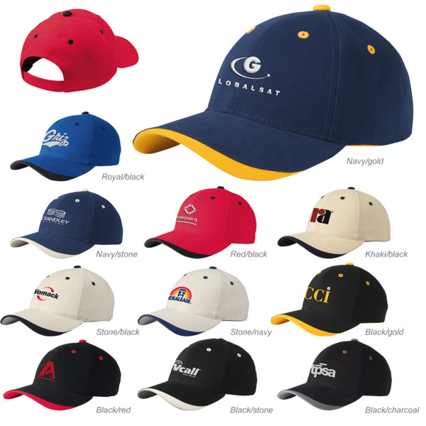 100% brushed cotton twill. Structured; six-panel; mid-profile. Pre-curved visor; contrast-color sewn eyelets. Velcro closure with tuck-in slot.