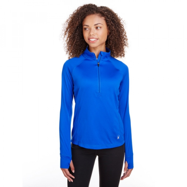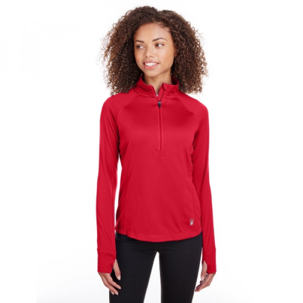 ::100% polyester textured mesh 140 gsm::Dyed-to-match reflective zipper::Iconic Spyder bug lower left front::Princess seam details::Thumb hole detail::Drop tail back hem::Reverse coil center front zipper with Spyder logo zipper pull