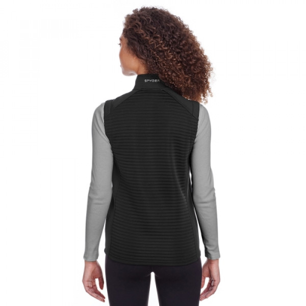 ::Fabric mix of neopreme fabric and 100% polyester bonded knit with polyfill channels::Iionic Spyder bug logo on front left::Active fit::reverse coil center front zipper with Spyder logo zipper pull::princess seam details::invisible seam front pockets