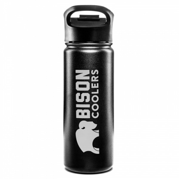 The Bison Bottle 18 oz does not discriminate against coffee, tea, water, beer, frozen drinks or any other beverage. Made from durable 18/8 stainless steel, it keeps cold for up to 24 hours and hot up to 12 hours. Our new Leak-Stop flip top lid prevents spills and keeps your drinks fresher, longer. With 18 ounces of capacity, it's the perfect bottle for any beverage. Recommended Use:::Chilled soda for the needed caffeine boost::Ice cold beer for watching the big game::Frigid water for re-hydrating::Frosty daiquiris for hanging by the pool