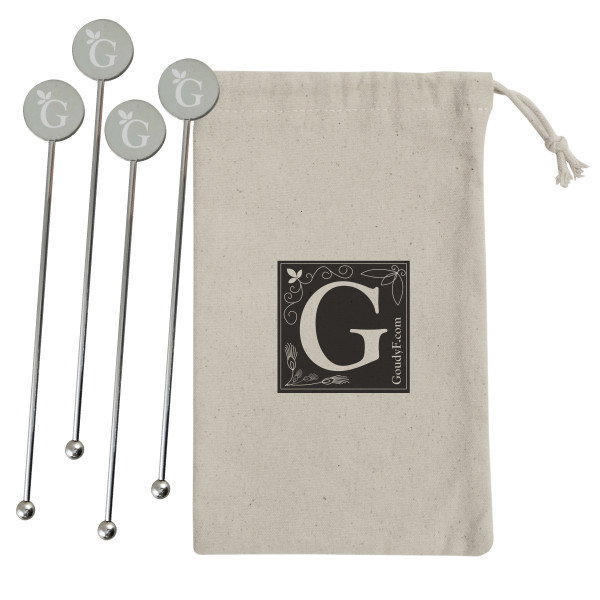 Set Includes Four Stainless Steel Cocktail Stirrers And Cotton Carrying Pouch