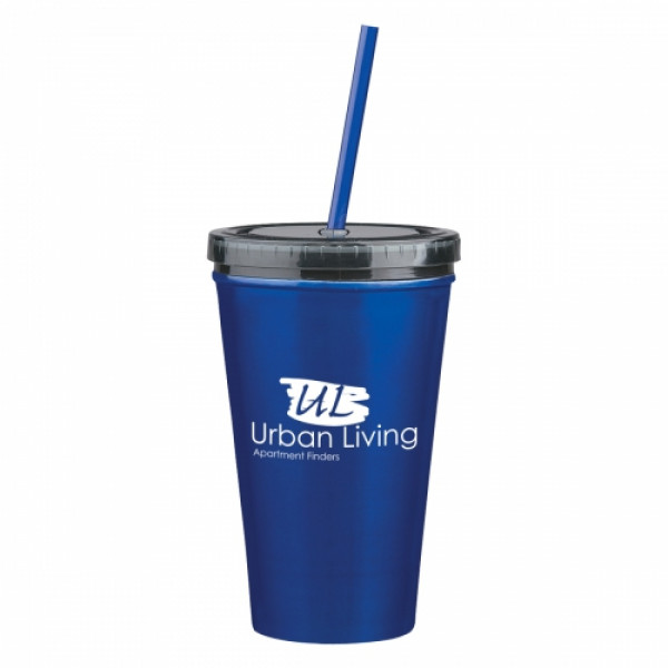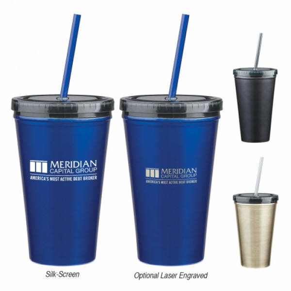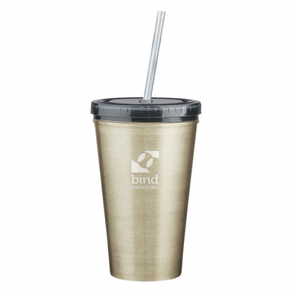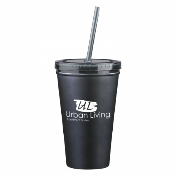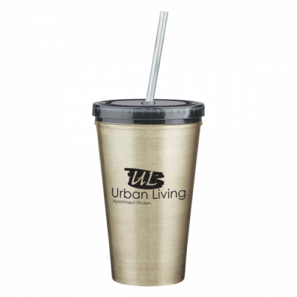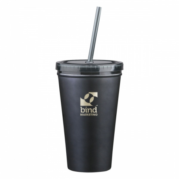 ::Stainless Steel Outer And Plastic Inner Liner::Double Wall Construction For Insulation Of Hot Or Cold Liquids::Screw On, Spill-Resistant Lid With Matching 9" Straw::Meets FDA Requirements::BPA Free::Hand Wash Recommended