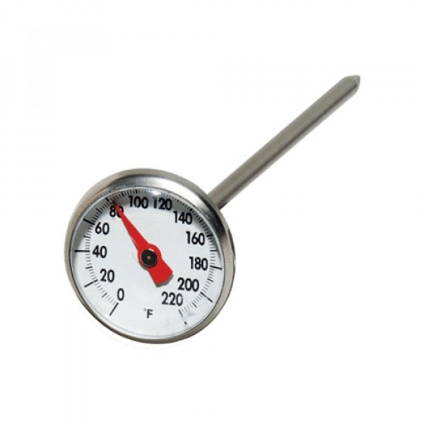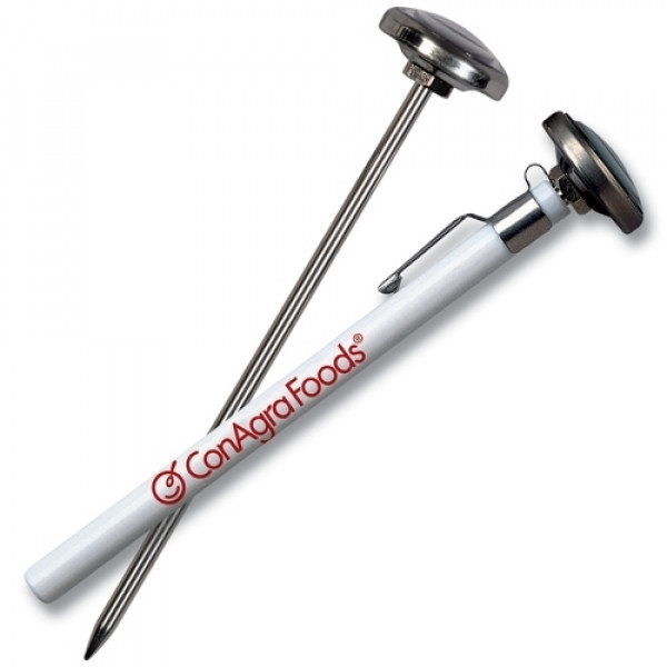 This compact stainless steel pocket thermometer is designed for convenience and accuracy, making it an essential tool for culinary professionals, outdoor enthusiasts, and anyone needing quick temperature readings. Featuring a 5" stainless steel probe and a magnifying lens for easy reading, it comes with a white protective sheath that includes a pocket clip and can be customized with your logo or message. With a universal temperature range of 0°F to 220°F, it's suitable for various applications.