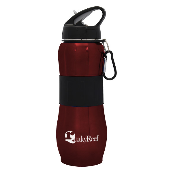 ::Screw On, Spill Resistant Sip Top Lid With Black Carabiner::Rubber Grip::Product Colors - Charcoal, Blue, Red or Green, all with Black Rubber Grip.