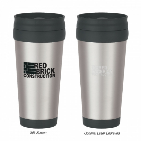 Stainless Steel Tumbler w/ Slide Action Lid & Plastic Liner - 16 oz.