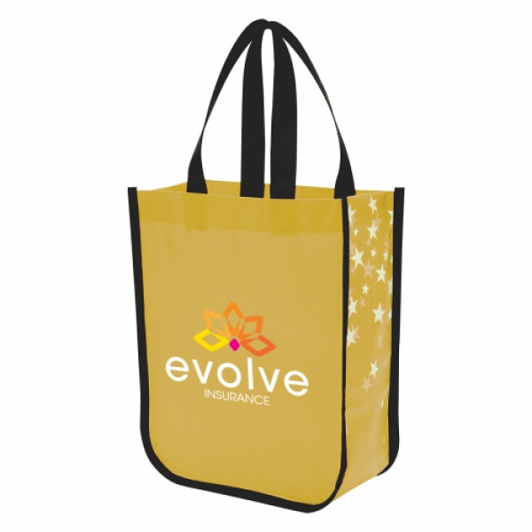 ::Made Of 80 Gram Laminated Non-Woven, Coated Water-Resistant Polypropylene::4 ½" Gusset::Reusable::Recyclable::13 ½" Handles::Spot Clean/Air Dry