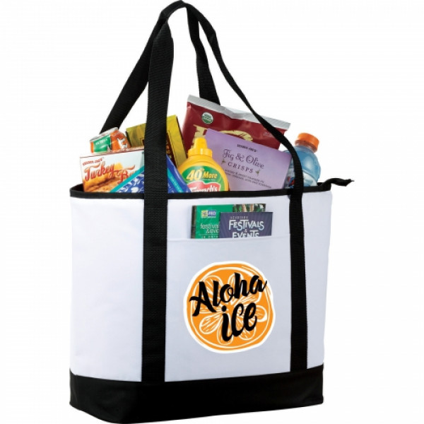The Stay Cool Cooler is the perfect cooler for large events. <br />::Large zippered and insulated main compartment allows you to pack everything you need and then some! <br />::Front slash pocket and 31" handles allow for easy and comfortable transportation.