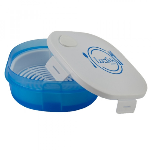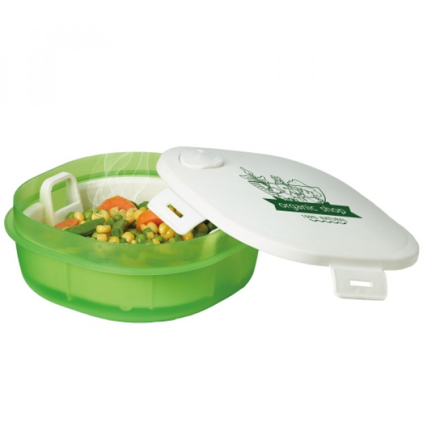 ::Modern, versatile design::Made of Food Grade Polypropylene::Features easy-to-lift steamer tray::Contains vent on lid to release steam when open::Healthy method to cook your vegetables - add water to bottom & microwave::Flip-down snap closure lid::Microwave safe::Top rack dishwasher safe::Made in the USA::Meets FDA requirements::BPA free
