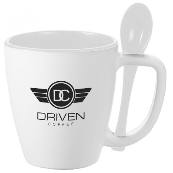 ::Uniquely Evans, this mug is double-wall insulated::16 oz. polypropylene cup includes a spoon::BPA free