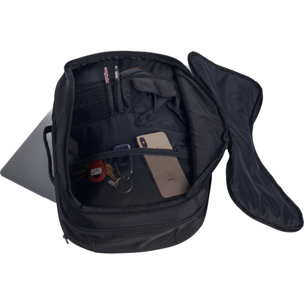 The STITCH® Day Traveler Backpack blends modern style with versatile function, making it ideal for both professional settings and weekend adventures. Its sleek hourglass silhouette offers a polished look, while multiple compartments keep your essentials organized on the go. Designed for convenience and adaptability, this bag is a great promotional product that can be custom branded to represent your company in a stylish and practical way.