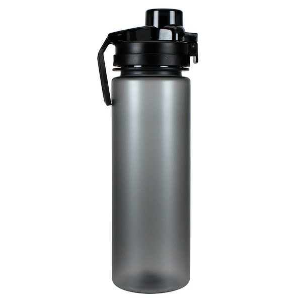 Stay Hydrated with the Stream AS Water Bottle! 27oz. Single wall, AS body bottle. Frosty Matte finish w/ plastic loop handle. Push button to raise lid.