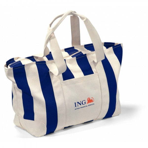 This large cotton canvas striped tote is a timeless and practical choice for everyday use. With its classic design and durable construction, it makes an excellent promotional product that can be custom branded to showcase your logo. Perfect for work, travel, or casual outings, this tote combines style with functionality.