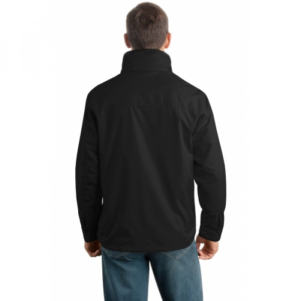 Build the teamor recognize those you depend onwith the Successor Jacket. This business-to-casual style has a modern look and a soft quiet hand. Designed with a stowaway hood this multitasking jacket is versatile enough for mild wind and rain protection. | 100% polyester with PU coating Polyester lining throughout Stowaway hood in cadet collar with hook and loop closure Black contrast on collar Interior zippered pocket Front zippered pockets Adjustable snap cuffs Open hem with drawcord and toggles for adjustability Port Pocket for easy embroidery access
