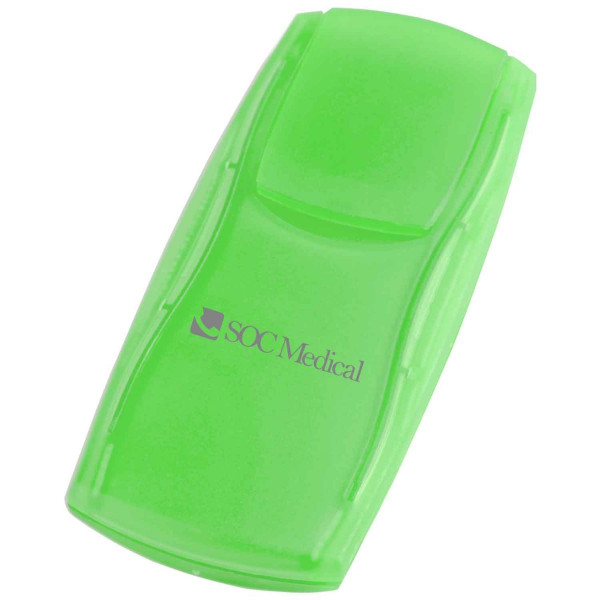 With its slim design, this outdoor kit fits easily into pocket or purse. Holds 3 latex-free vinyl bandages and 2 SPF 30 sunblock packets.::Made in the USA.