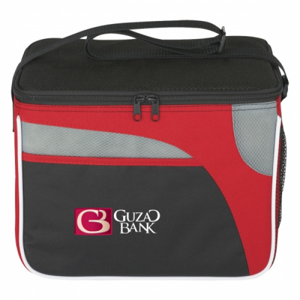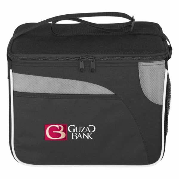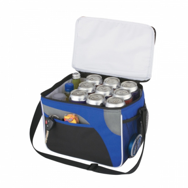::Made Of Combo: 600D Polyester And Dobby Non-Woven::PEVA Lining::Adjustable Shoulder Strap::Side Mesh Pocket::Front Pocket::Double Zippered Main Compartment::Holds Up To 12 Cans::Spot Clean/Air Dry