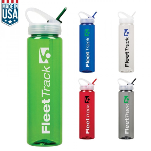 ::32 ounces of hydration. Fill up twice and you are set for the day!::Ounce markings to track your progress, or to mix the perfect Arnold Palmer: part lemonade, part iced tea::Translucent colors - root for a team or promote a brand::BPA-Free and made from PET, so drink with confidence::Flip spout means no spills when closed::Carry handle means you can swing to the beat of the music while taking a walk::Made in the USA::FDA Approved::Prop 65 Compliant