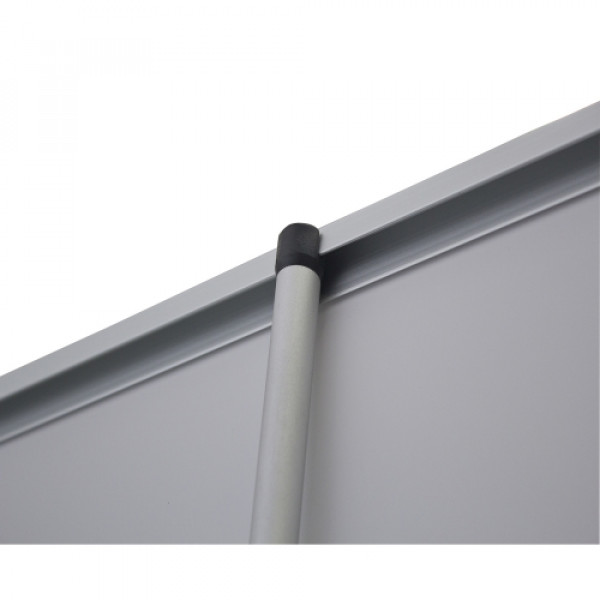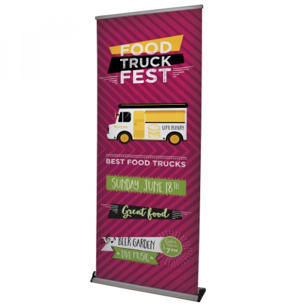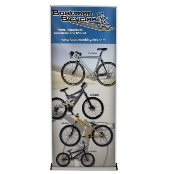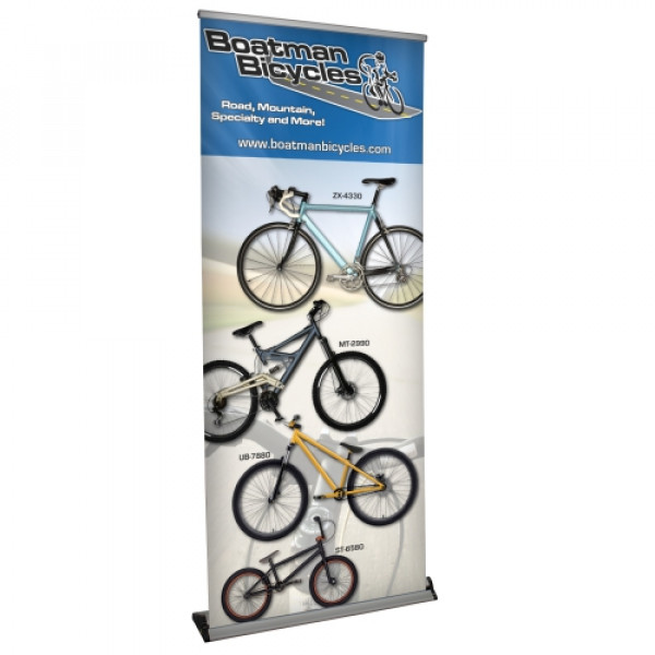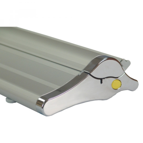 This retractor features a flip-open base for easy graphic changes, and its hardware is built to last a lifetime.::Durable construction makes this a long-lasting option::Low-profile aluminum base is available with black or silver end caps::Flip-lever telescoping pole makes setup and adjustment simple::Flip-open base allows for easy banner changes::Printed on Titan™ no-curl hybrid media::Banner is single-sided::The banner attaches to a leader on the roller using tape::Banner height is adjustable from 31.5" to 78"::800 RCAT rating