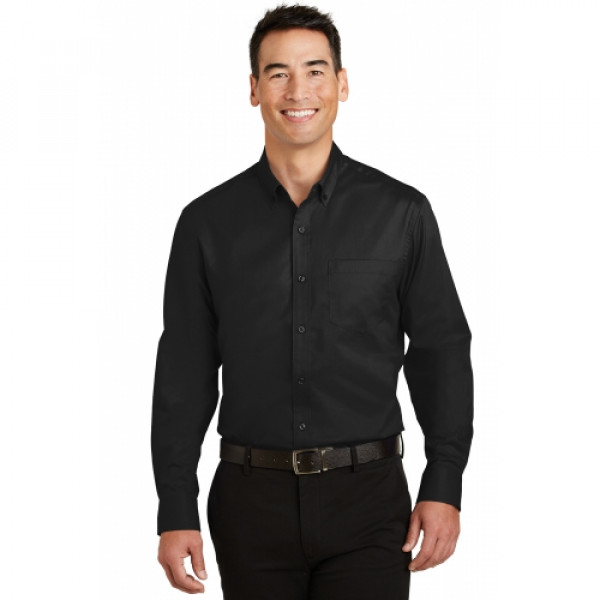 A heavy hitter in performance, our SuperPro Twill Shirt easily resists stains and wrinkles while releasing stains. Designed for comfort, this versatile shirt functions well in almost any work environment from the office to food service.::3.4-ounce, 55/45 cotton/poly::Button-down collar::Back shoulder pleats::Dyed-to-match buttons::Left chest pocket::Rounded adjustable cuffs