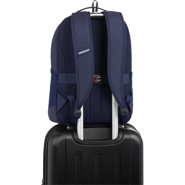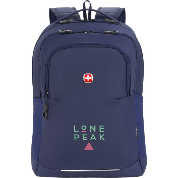 The SWISSGEAR Ridgeline Laptop Backpack is thoughtfully designed for students, commuters, and everyday users who want a lightweight yet highly functional carry solution. Crafted from durable polyester made from recycled plastic, this backpack offers a more sustainable way to stay organized without sacrificing performance or style. Its spacious main compartment features padded sleeves that securely hold a laptop up to 16 inches and a tablet up to 11 inches, while still leaving ample room for books, binders, and daily essentials. The front organizer panel keeps smaller items neatly arranged with dedicated pockets and an integrated lanyard for keys or fobs, ensuring everything is within easy reach. Comfort is prioritized with a breathable, fully padded back panel and contoured shoulder straps, making it ideal for long days on the move. With features like a trolley strap for travel, quick-access front pocket, and dual mesh side pockets for bottles or umbrellas, this versatile backpack is also an excellent promotional product that can be custom decorated or branded for schools, events, or corporate use.