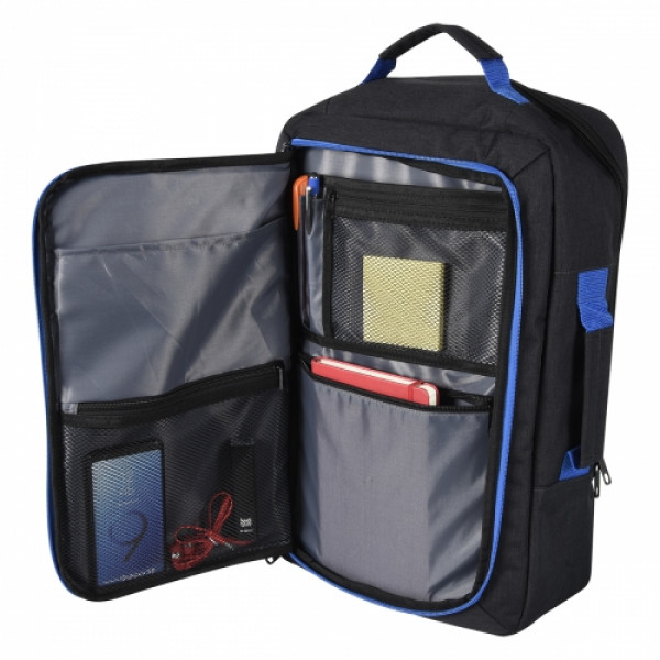 ::Made of 600D Polyester::Adjustable Padded Shoulder Straps With 2 Carrying Handles::Double Zippered Main Compartment With Padded Back::Front Double Zippered Organizer Compartment For Accessories With Inside Zippered And ::Mesh Pockets::Inside Pocket And Laptop Pocket With Hook & Loop Closure::Side Pocket::Front Zippered Pocket::Trolley Sleeve::Accommodates Most Laptops Up To 17"::Spot Clean/Air Dry
