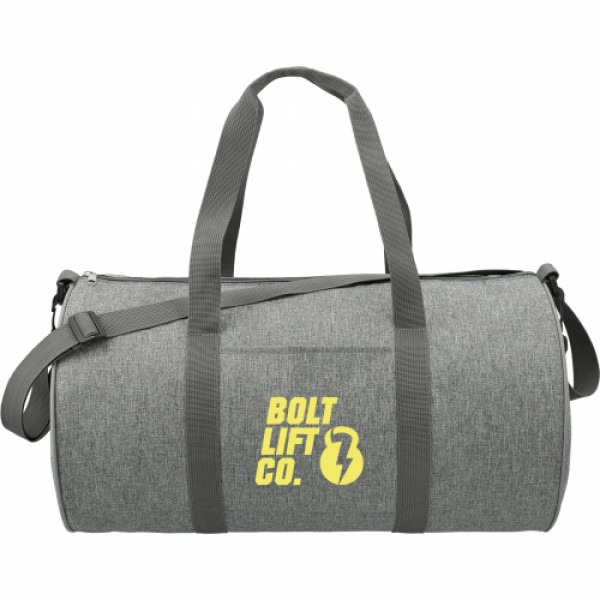 The Tahoe 18" Graphite Barrel Duffel features a zippered main compartment front slash pocket adjustable/removable shoulder strap and webbing grab handles in a timeless duffel silhouette. ::The material is a durable 600D Polycanvas with a coated inner lining.