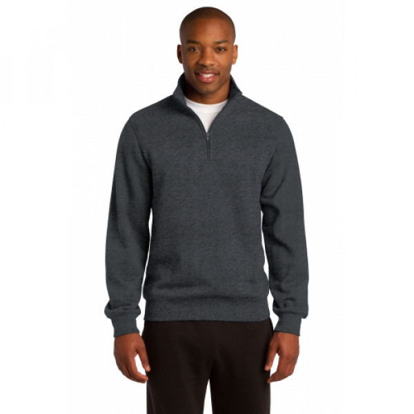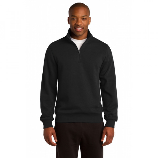 These durable, colorfast quarter-zips feature a better fit with minimal shrinkage, as well as 2x2 rib knit cuffs and waistband.::9-ounce, 65/35 ring spun combed cotton/poly fleece::Twill-taped neck::2x2 rib knit cuffs and waistband with spandex