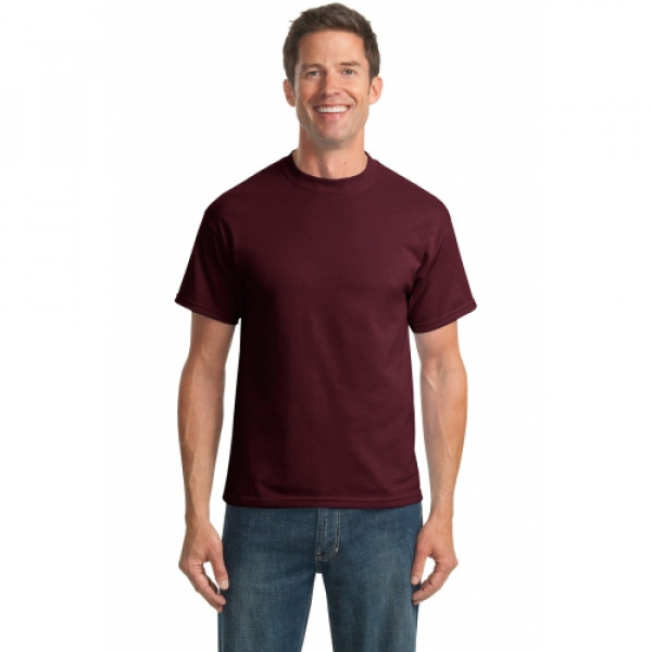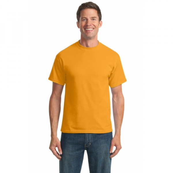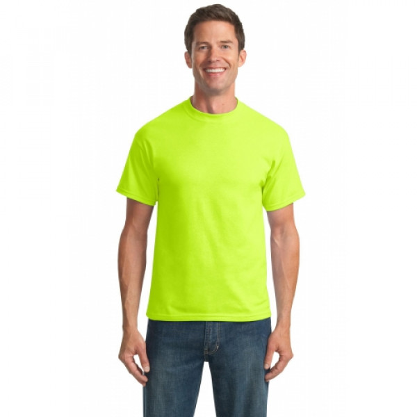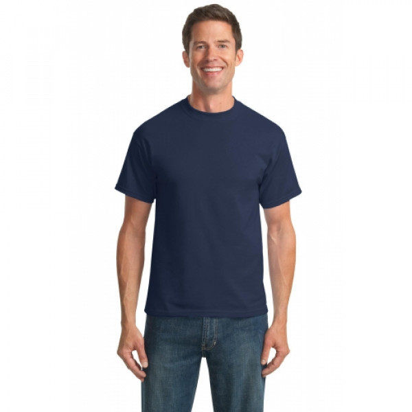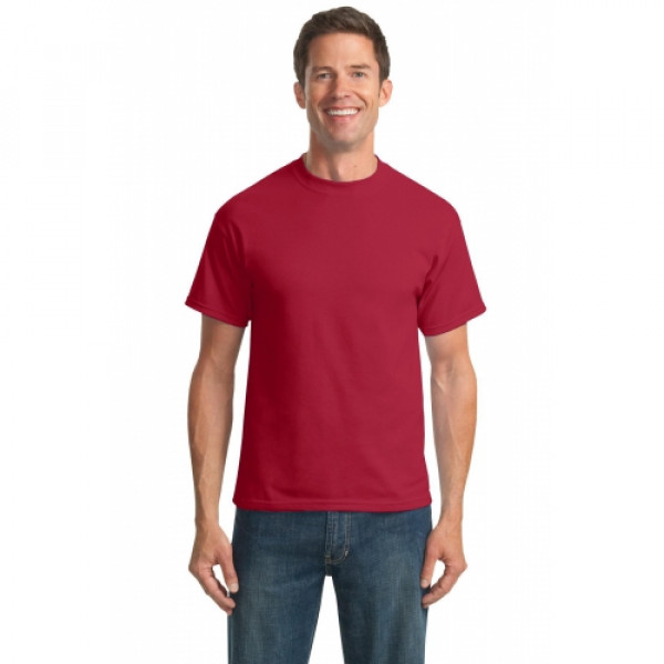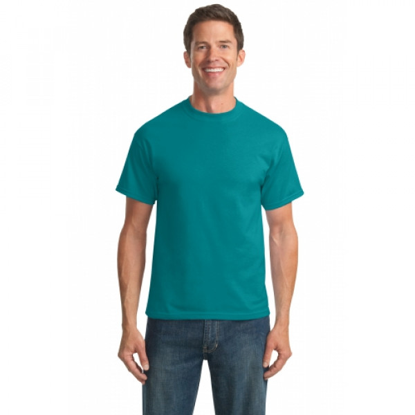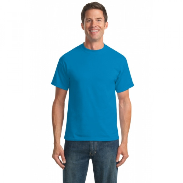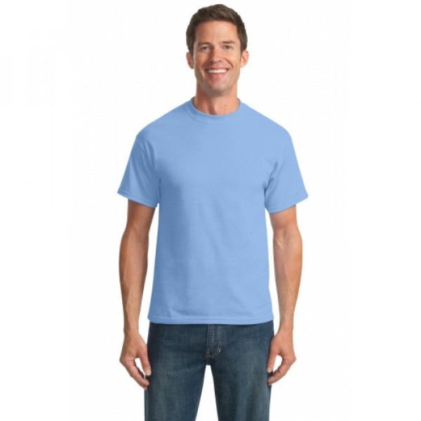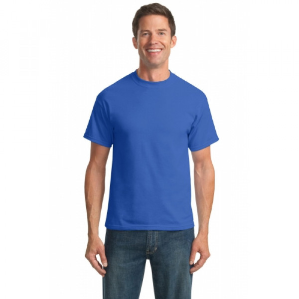A reliable choice for comfort, softness and durability.::5.5-ounce, 50/50 cotton/poly::Made with up to 5% recycled polyester from plastic bottles