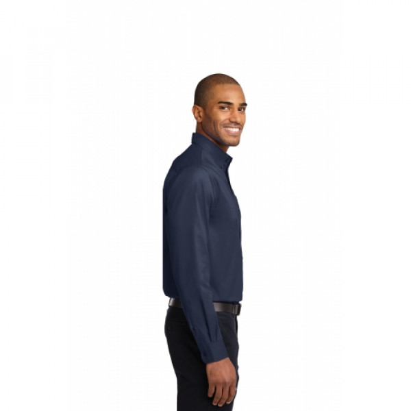 This comfortable wash-and-wear shirt is indispensable for the workday. Wrinkle resistance makes this shirt a cut above the competition so you and your staff can be, too.::4.5-ounce, 55/45 cotton/poly::Button-down collar::Dyed-to-match buttons::Patch pocket::Box back pleat::Adjustable cuffs Classic Navy and Light Stone have contrast inside neckband only.
