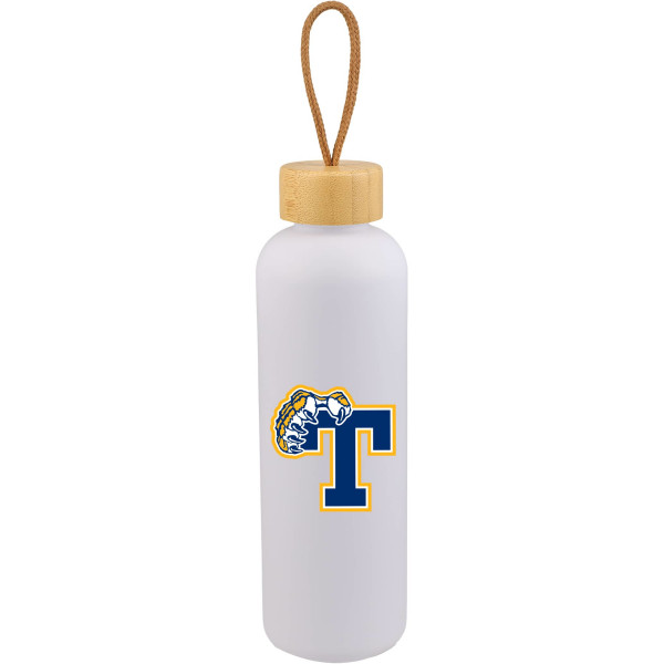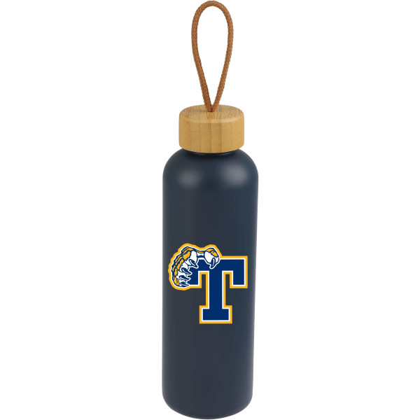 Stay hydrated in sustainable style with the Tania 26 oz Bottle with FSC® Bamboo Lid. Designed for everyday convenience, this lightweight bottle features a sleek single-wall construction and a natural bamboo lid accented with a cotton rope for easy carrying. Made from 100% recycled plastic, it’s an eco-conscious choice that makes a meaningful impact. As a promotional product, it can be custom decorated or branded to showcase your logo while promoting sustainability. Hand wash only. Not intended for hot beverages over 185°F.