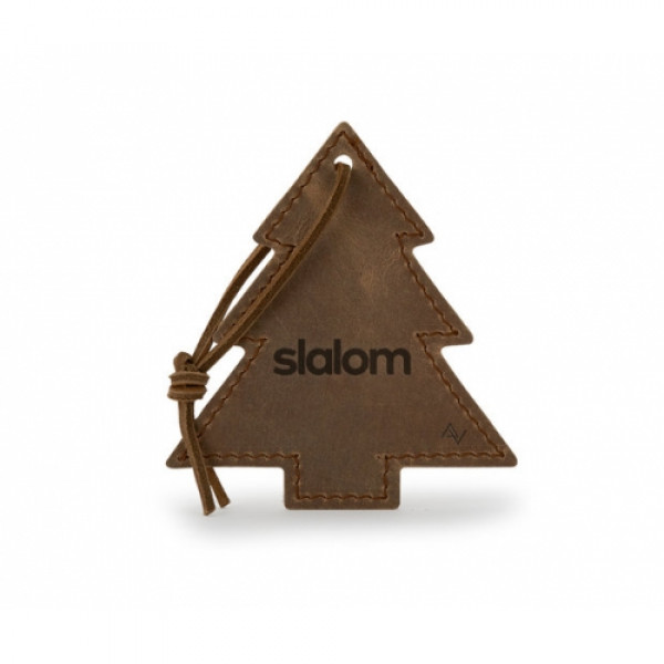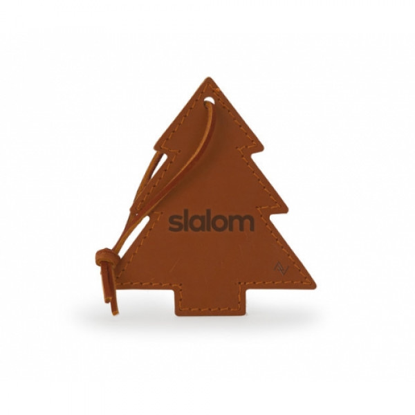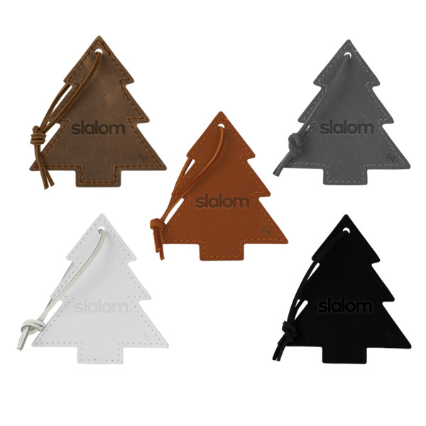 Tree ornament with leather shoelace tie. ::Choose from 6 domestic, USA Made, leather colors and customize to match your company logo to create something truly unique. Colors and distress marks will vary