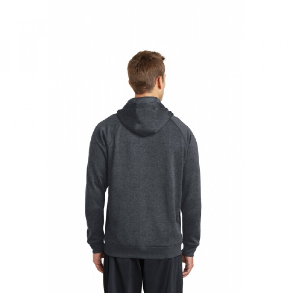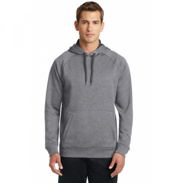 Snag-resistant and pill-resistant with a matte finish, the double-knit construction enhances breathability and moisture wicking, while a Graphite mesh hood lining and two-tone drawcord add an athletic edge.::100% polyester::Tag-free label::Three-panel hood::Two-tone, textured drawcords::Closed-hole Graphite mesh hood lining::Taped neck::Raglan sleeves::Rib knit cuffs and hem::Integrated front pouch pocket