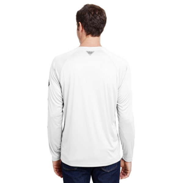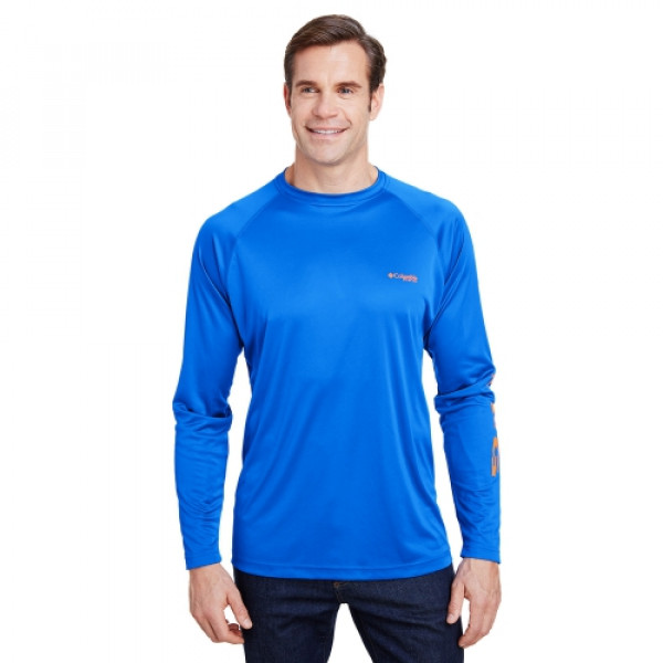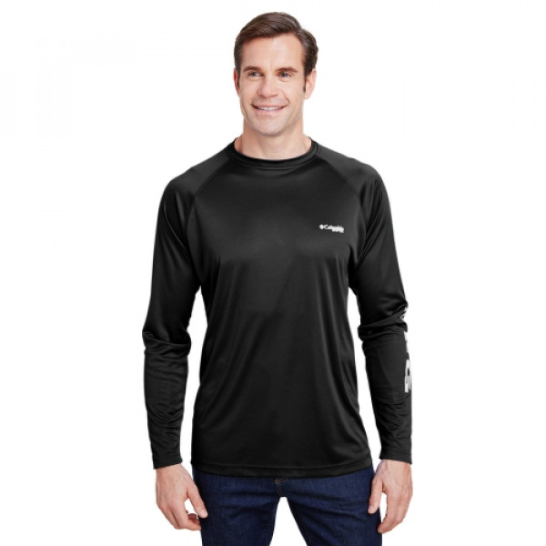 ::100% polyester interlock Omni-Wick™ moisture management::Omni-Shade™ UPF 50 sun protection::Quick dry::Classic fit::Performance fishing gear::Printed Columbia PFG print on left sleeve and left chest
