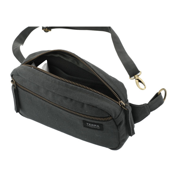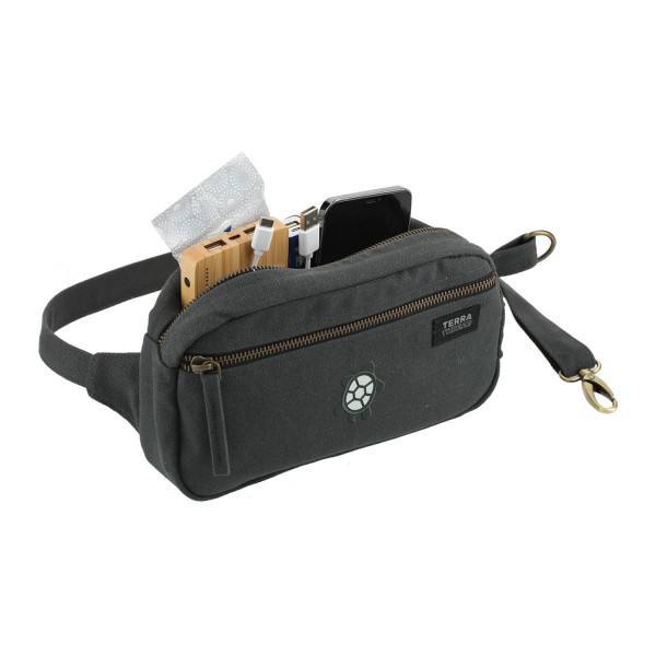 - Not too big, not too small, wearable on your hip or as a tiny sling bag—the Cadera Fanny Pack is ready to roll when you are. Pack your essentials in this eco-friendly fanny pack made with organic cotton canvas when you want to move through the day with your hands free.?The main zippered compartment is divided with a simple drop-in pocket to keep phone screens separate from scratchy stuff like keys. One external zippered pocket secures other small items and keeps them handy. An adjustable strap with a snap hook makes it easy to get on and off.