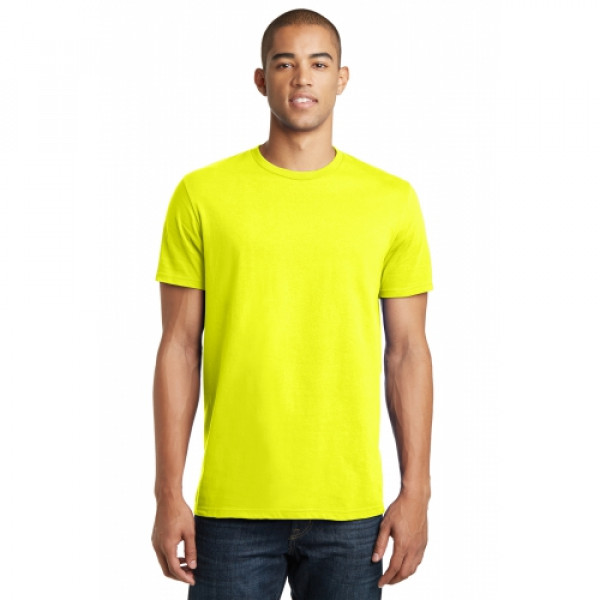 This tee rocks with comfortable softness and smooth lines.<br />::4.3-ounce, 100% soft spun cotton, 30 singles<br />::50/50 soft spun cotton/poly (Neon and Heathered Charcoal)<br />::90/10 soft spun cotton/poly (Heather Grey)<br />::Tear-away tag