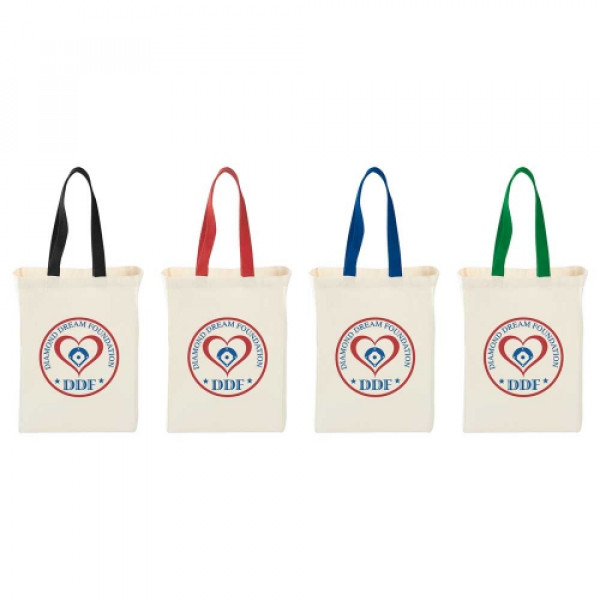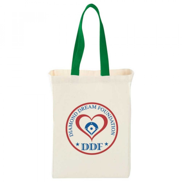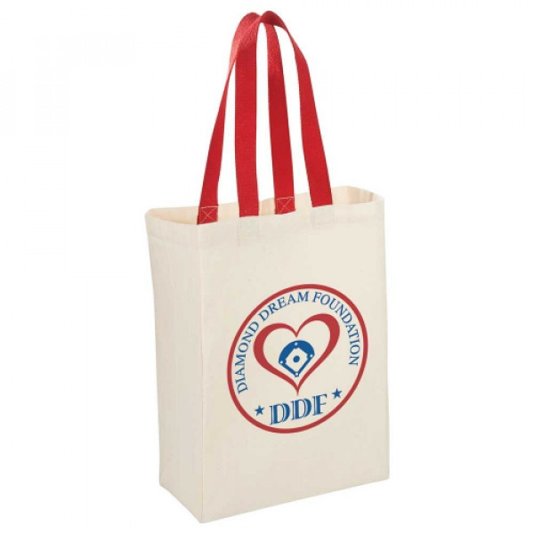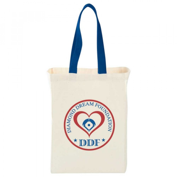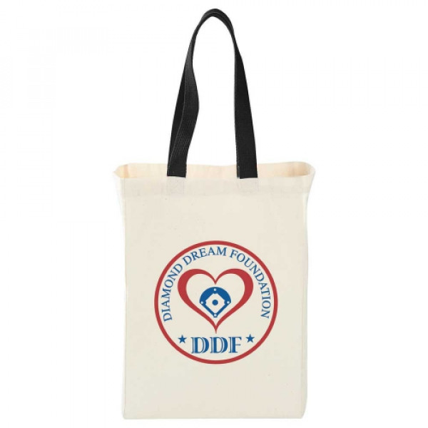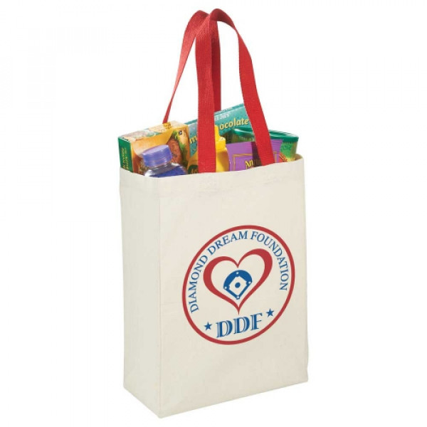 The Natural 5oz Cotton Canvas Grocery Tote has an open main compartment with 17.5 inch webbed handles.