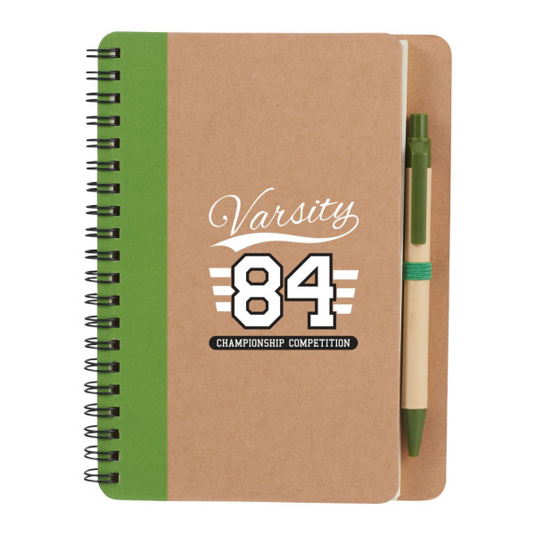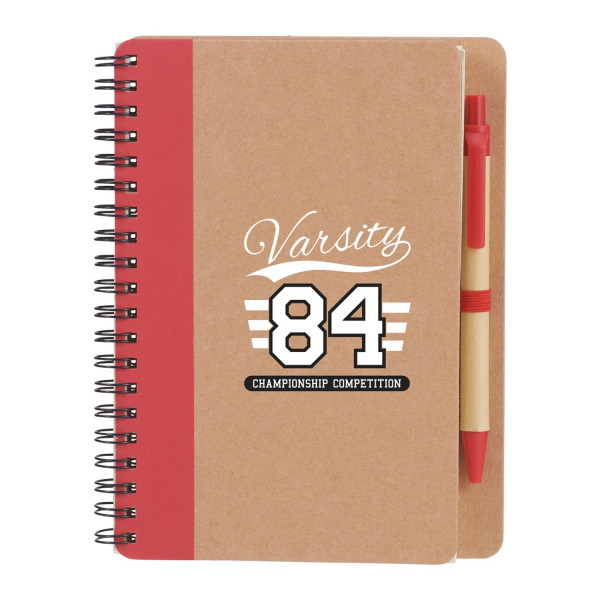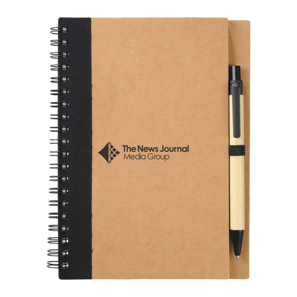 Introducing the Eco Spiral Notebook & Pen - the ultimate environmentally friendly promotional product! With its 60 ruled sheets of paper, matching color elastic pen loop, and included ballpoint pen, this notebook is everything you need to jot down your ideas sustainably. And the best part? With every purchase, 1% of the sales are donated to environmental nonprofits through our partnership with 1% For The Planet. Get ready to turn heads and save the planet, one notebook at a time!