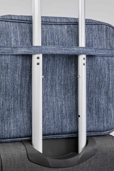 - Trolley sleeve fits over rolling luggage for simplified travel