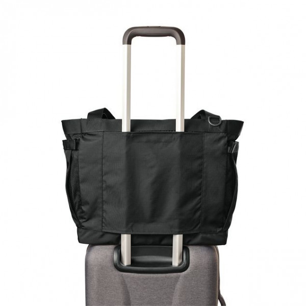 - Luggage pass-through for easy attachment to rolling bags