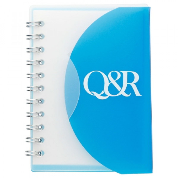 The Post Spiral Custom Notepad is a junior-sized spiral notebook with plastic cover that features a fold over flap in various colors. This lightweight and portable notebook's compact size, large imprint area, and bright color selection make it a great choice for offices, schools, tradeshows, and more.<br /><br />::6 colors to choose from<br />::Mini size for easy portability: 4-1/4" H x 3-3/16" W<br />::1-day production time available
