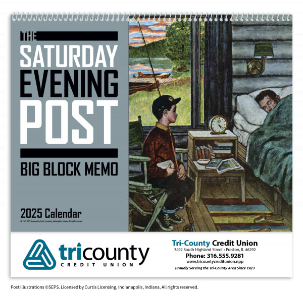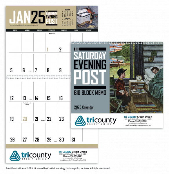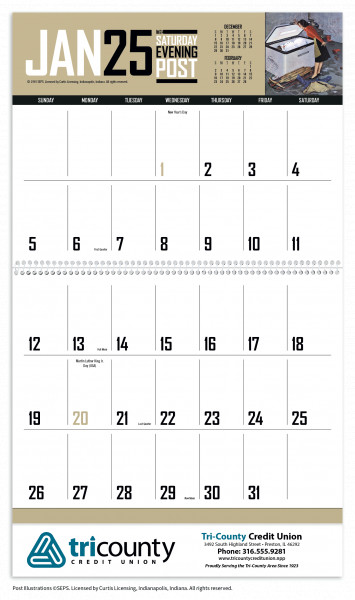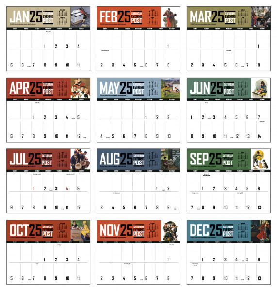This calendar has big bold numbers, plenty of writing space and the nostalgic artwork from The Saturday Evening Post magazine.